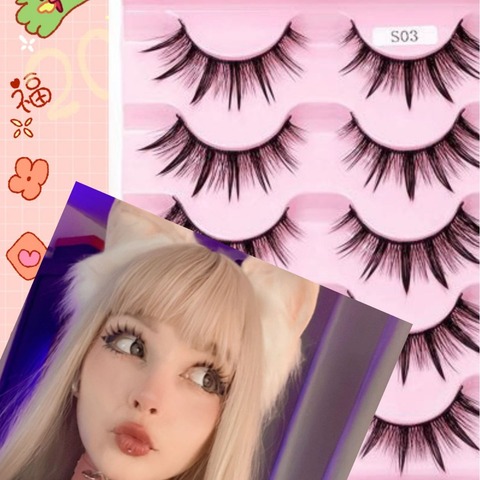 5 Pares Completa Faixa Cílios Forma Spike Wispy Lash Clássico Longo Manga Cílios Postiços Extensão