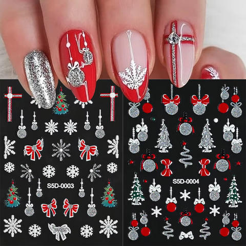 5D 크리스마스 네일 아트 스티커 겨울 새로운 스노우 베어 5D 노출 릴리프 네일 스티커 눈송이 네일 스티커 데칼